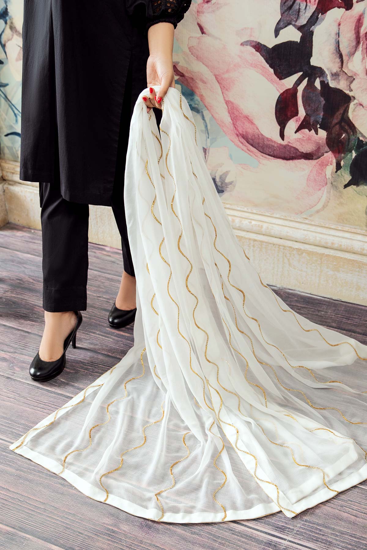 – Embroidered Bember Chiffon Dupatta